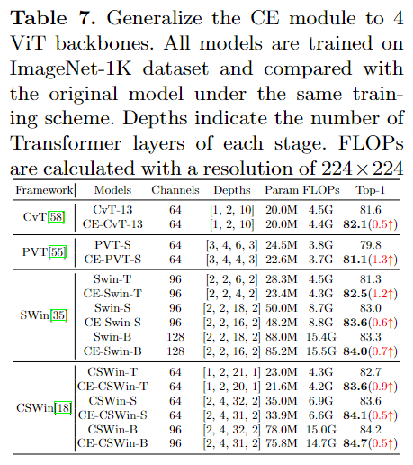 然后,我们尝试将 CE 设计推广到 CV 的更多 ViT