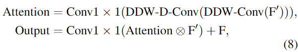 大卷积核提供与自注意力机制类似的感受野。通过使用深度卷积、深度扩张卷积和
